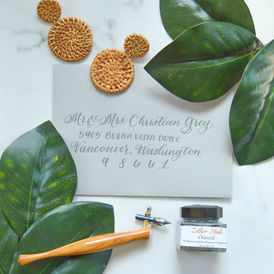 Guest address calligraphy, place setting calligraphy, escort cards, menus, customization, personalization.