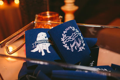 Custom Wedding Invitations, Escort Card Calligraphy, Custom Guest Book Sign, DIY Print Signage, Custom Koozies, Custom Cocktail Napkins.